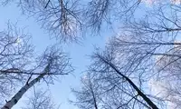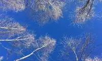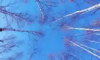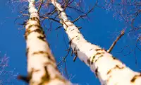 The silvery white trunks look particularly beautiful against the backdrop of gradient blue.