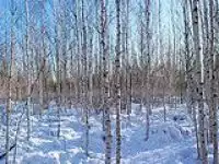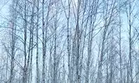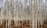 The straight trunks of the birch forest stand there, without any leaves, densely packed as far as the eye can see.
