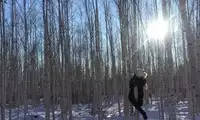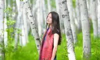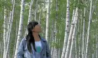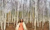 The birch forest is really beautiful, and the picture of standing in the woods is amazing.