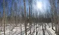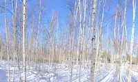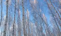 The birch forest beneath the blue sky was so beautiful and pure that words can't describe it. Perhaps the clouds had fallen to the ground, transforming into a vast expanse of white snow. Squirrels and furry rabbits were raised in the birch forest; these tiny creatures were surprisingly able to withstand the freezing cold. Despite the sun, I felt no warmth at all. After walking in the birch forest for half an hour, I was too cold to bear it and returned to the car.