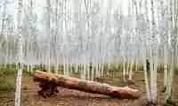 The birch forest resembles a fantasy fairytale, breathtakingly beautiful. Birch trees resemble northern poplars, standing tall and majestic, like swords reaching towards the northern sky. Some, or even just a few, grow into large trees with forked branches and broad, rounded crowns, showcasing a unique charm. Birch trees often grow alongside larch and musk pine. There are also isolated birch forests, and the birch forests along the highway are a breathtaking sight, with dense rows of white-gray trunks flashing by. Sometimes, when the wind blows, the leaves at the treetops are tossed back, revealing the silvery-white undersides, like a tree half-blooming with white flowers.