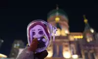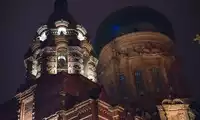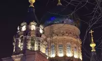 It gets dark early in the north, and it gets dark at about 4:30. Sophia Cathedral under the night sky. Under the light, the church is particularly imposing, and the onion-shaped roof is unique.