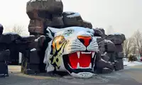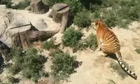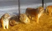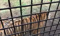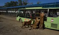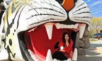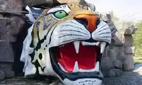 At Tiger Forest Park, you can see white tigers, ligers, and many other types of tigers! As you enter the park on the tour bus, you'll see a giant tiger right outside the window!