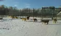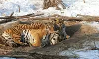 I was most looking forward to a close encounter with the tiger cubs, but the bus driver said there weren't any cubs left, so I had to watch the full-grown tigers from the window. The cats, all plump and healthy, were lying on the snow basking in the sun. It was hard to resist the urge to jump out of the bus and pounce on a tiger! There were lions, leopards, and other animals in the zoo, but the tigers were my favorite.