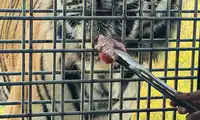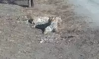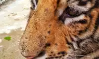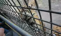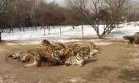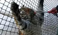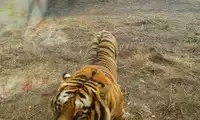 The live rooster was stuffed through a narrow gap in the car into the tiger's world. It had virtually no chance of fighting back, and was instantly taken down by the watching tigers. Even the rooster struggled in the tiger's jaws. The tigers in the entire enclosure looked lethargic, like a winter's day. However, a friend in the car told me that if we had brought a cow, there would have been a thrilling fight.