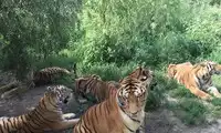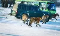 For those who like to see animals, it's worth a visit. The scenic area is easily accessible. I took the bus there. The entrance to the scenic area is a distance away from the ticket office. You just need to walk along the cement road. I bought the ticket online for 88, which includes the bus ticket. There are different prices for ID cards from within and outside the province. There are also two types of vehicles, one with glass and one without glass. The one without glass is more expensive, about 20. It's nice to see a group of Siberian tigers. You can also feed them. The tour takes about 90 minutes.