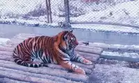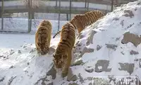 The Siberian Tiger Park is a great place to visit in winter. Tigers are more sensitive to heat than cold and are more active in the snow. I arrived at the park right after it opened at 9 a.m., taking the first bus, which cost 10 yuan. There was no guide (perhaps it was too early and they hadn't started work yet). The park is divided into several areas, and cars pass through a series of metal gates. Drivers stop when they see a tiger and let everyone in. Since no one in our car was feeding the tigers, they didn't come around, just watching from a distance. Finally, the car stopped at the entrance to the pedestrian area, where everyone disembarked and entered a wire-enclosed corridor for a close-up look at the tigers in the enclosures. The enclosures seemed to hold young tigers, with well-proportioned bodies and light-colored fur. The tigers in the free-range area were likely adults, with sturdy bodies and dark yellow fur. The corridor connects to the tiger viewing platform, where you can see the entire free-range area and enjoy great photo opportunities. In addition to tigers, there are also a small number of lions, leopards, and other animals. After walking through the corridor, you exit the tiger park. In addition to watching tigers, there are also circus performances here, but you have to buy tickets separately, so I didn’t go to see them.