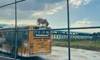 There are two types of vehicles: the thrilling vehicle, which costs 20 yuan more than the regular vehicle. The vehicle is surrounded by a wire mesh, and you can stop to feed the tigers during the tour. Each piece of meat costs 10 yuan. However, the wire mesh makes it difficult to take photos. The regular vehicle, without the wire mesh, is more suitable for photos. If you want to feed the tigers, you can do so on the walking path after the bus arrives.