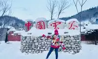 I went there with my friends. It was not as commercial as the Snow Village, and there were not many fun places. We stayed at Aunt Zhang's house that night. Aunt Zhang's family was very nice and would help us solve any problems. We met a young couple here. The girl was very cute and wrote us a Christmas card. The next day, we took a horse-drawn trek and a snowmobile and hiked to the top of Yangcao Mountain. We arrived early, there were few people, and the rime was beautiful. Walking down the mountain is the Snow Village.