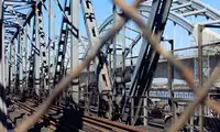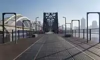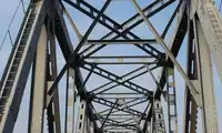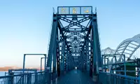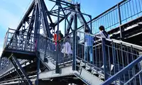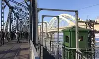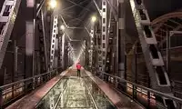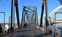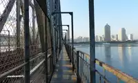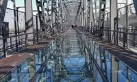 The free bridge, the former railway bridge is now a sightseeing bridge. There is a section of the bridge that is made of glass, but the glass is quite stained and one piece is broken.
