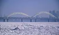 The Harbin Songhua River Railway Bridge, also known as the Binzhou Railway Harbin Songhua River Bridge, is located east of Stalin Park on the banks of the Songhua River in Harbin, Heilongjiang Province, at kilometer 2741 of the Binzhou Railway. It serves as the boundary bridge between Harbin's Daoli and Daowai districts.