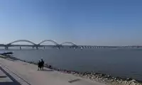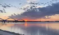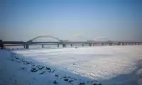 A bridge across the Songhua River in Harbin is one of the beautiful scenery on the Songhua River