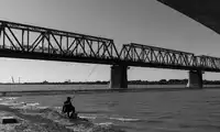 The Songhua River Railway Bridge. The one on the left is the abandoned old railway bridge, which is now open to pedestrians, and the one on the right is the new railway bridge.