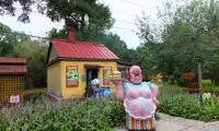 The Russian style town has a very good environment and is well planned. There are various Russian style huts, people growing vegetables, flowers, and raising animals in front of the house, and dolls can be seen everywhere. It feels like entering a Russian fantasy theme park full of girlish hearts. It is precisely because of this that I feel that this style town is deliberately built, not the kind of simple and authentic feeling. There are several exhibition halls and shops, you can go in and see; there are also Russian aunties, you can take photos with her, but you have to pay 20 yuan per person. We bought a big bread in the store inside, and then sat on the green wooden chair under the tree, eating and enjoying the cool, and then admiring these dreamy pastoral huts one by one. It is the house of my dreams, a small house, with a garden, a vegetable garden and a fence outside. There is a swing in the garden, a dog, and my husband and my children (well, the dream is so beautiful)~~