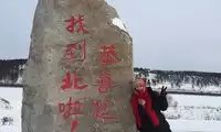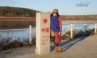 China's northernmost point! Open your arms southward in front of the stele and you'll embrace the entire Celestial Empire! Behind you is the boundless Longjiang River and the Russian mountains across the river!