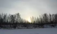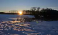 The Ussuri Shoal is a shallow beach on the Heilongjiang River bordering Russia. The natural scenery is very beautiful. In winter, the sun is about to set at three o'clock in the afternoon.