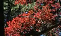 The red pines in the park are very tall, and there is a lake outside the park gate. The lake is full of autumn colors and the scenery is picturesque.
