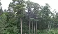 We often encountered people picking pine cones along the way. The driver who came back later told us that those people were in great danger. The trees were as high as four stories high, and they were working without any protection. If they fell, they might be disabled if not killed.