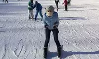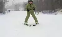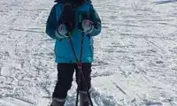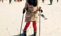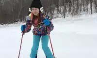 It was my first time skiing, and it was great. The child had a good balance, and the ski slope was large but not too steep.