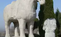 Qianling Mausoleum is located on Liangshan Mountain, 6 kilometers north of Qian County, Xianyang City, Shaanxi Province. It is the joint tomb of Emperor Gaozong of Tang, Li Zhi, and Empress Wu Zetian. Qianling Mausoleum is the best-preserved main tomb among the 18 Tang mausoleums, and it is also the only mausoleum in the Tang mausoleum that has not been robbed. Highlight 1: The main mausoleum was built in the pattern of Chang'an City, the capital of the Tang Dynasty. It is divided into the imperial city, the palace city and the outer city. The inner city has four gates, namely the Qinglong Gate in the east, the Suzaku Gate in the south, the Baihu Gate in the west, and the Xuanwu Gate in the north. According to the investigation of archaeologists, the inner city of the mausoleum is about square. Highlight 2: The wordless stele on the east side of Sima Road outside the Suzaku Gate is made of a complete boulder. It is 7.53 meters high, 2.1 meters wide, 1.49 meters thick, and weighs 98.8 tons in total, giving people a solemn, thick and integrated beauty. Highlight 3: On the east and west sides of the sacred road outside the Suzaku Gate, there are two groups of stone group portraits. The stone statues are neatly and respectfully arranged in front of the mausoleum, with 32 statues on the west side and 29 on the east side, for a total of 61 statues. These life-size stone statues are dressed differently, some in robes with waists, and some with lapel and purple sleeves. But they all stand side by side, with their hands clasped in front of them, in an extremely humble posture, as if they are lining up here to welcome the emperor's arrival, but these stone statues have no heads.