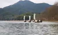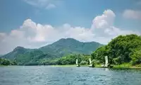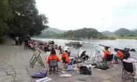 The entire scenic area of Guyan Painting Village is divided into two major sections. One section is the river, imbued with romantic charm, where white sails sail on the ocean-like river. The other section is the ancient town built along the river. Although small and far inferior to the famous Jiangnan water towns, the overall quaint atmosphere is still quite distinct. Walking through this ancient town, less than a kilometer long, you can see a variety of shops, walls full of historical traces, and bluestone pavements that convey a sense of history. Students from the China Academy of Art quietly enjoy the scenery while taking up paper and pen to sketch the tranquil Guyan Painting Village.