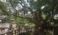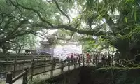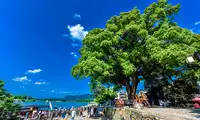 The thousand-year-old camphor tree near Huaxiang Wharf provides a big umbrella for tourists.