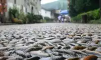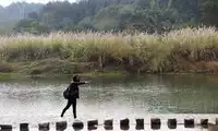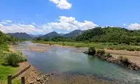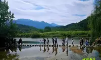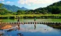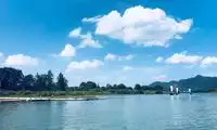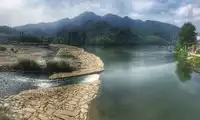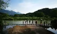The riverbed is mostly paved with cobblestones, which shimmer in the sunlight. When the water level is low, the cobblestones along the river surface, forming a long cobblestone path. Walk slowly along the path, enjoying the gentle breeze and soft clouds.