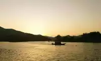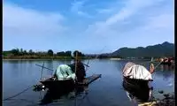 The sun was about to set behind the mountain, and the sky was slightly red, and the river was covered with a layer of shining clothes. Along the way, various fishing boats appeared on the river from time to time, which made people feel like they were at a fisherman's home.
