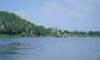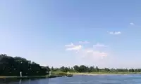 In addition to the pleasure boats, I also saw a ferry on the river. It seemed to be for locals, and you could ride a motorcycle or push a bicycle up there. It also seemed like tourists staying at local farmhouses were taking the ferry. The ferry's destination was different from the pleasure boats'. They didn't go to the pleasure boats' docks, but instead went straight back and forth across the river. The other side seemed to be a mudflat with a grassy path extending out. I couldn't see where it went from my side, but I guess it was going to the local village.