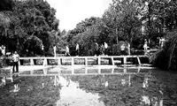 Young people who practice calligraphy with clean water on the ground can usually be seen in parks. Uncles and uncles practicing calligraphy with clean water are more rare.