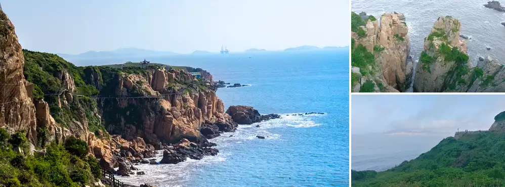 Located at the easternmost tip of Sijiao Island, it is connected by a wooden plank road carved out of the cliffs. Walking along the wooden plank road, you will see cliffs under your feet, the sound of the blue sea in your ears, and the strange reefs and rocks in your eyes. When the wind is calm, the sky is clear and the sea is blue. When the wind blows, the waves crash against the shore. The unpredictable changes of the sea are fully displayed here, which makes you feel that the world is so big and human beings are so small.