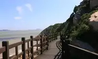 The Heshangtao Scenic Area is the most distinctive of the main Sijiao Island scenic areas. During the Tang Dynasty, when Jianzhen, on his voyage to Japan, passed through the Shengsi Sea, a young monk accompanying him, Xuanneng, accidentally fell into the sea and was trapped there for thirty years. Locals later named this area Heshangtao in his memory. The scenic area boasts a wealth of attractions, including the Heshang Stone, Chaoyang Pavilion, Haijiao Teahouse, and Buxu Terrace. A thousand-meter-long wooden plank road runs through the entire area. Strolling along it, you'll be greeted by the ocean below, waves crashing against the rocks on either side, creating a vivid natural landscape of turquoise sea, golden sand, waves, and unique reefs. Within the scenic area, a transparent glass platform juts several meters above the cliff. Standing on this tempered glass platform, you can gaze down at the vast ocean from over ten meters above, feeling as if your feet are standing on air. The thrill of this experience can only be truly appreciated by those who have personally experienced it.