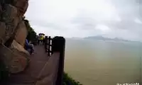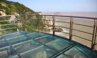 This was once the place where Jianzhen passed by during his voyage to the East. The main route is to walk along the wooden plank road on the cliff, which stretches for a thousand meters and runs through the entire scenic area. There is a glass platform that protrudes a few meters from the cliff, and you can see the sea through the glass. Although the glass is not very transparent, I am afraid of heights and it is not a problem for me.