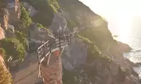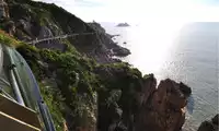 It's a plank road along the coast, quite high, with a glass viewing platform in the middle, but the glass is a bit dirty.