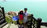 The only attraction we visited was Heshangtao. We even bought a package ticket that included Liujingtan! Some people love Liujingtan, a great spot for watching the sunrise. However, since we first visited Heshangtao, we were visually fatigued by the azure sky and the endless sea, so we didn't really feel anything when we got to Liujingtan! It's essentially just a boardwalk along the seashore. The entrance fee was 100 yuan, and shuttle service to both attractions was included in the ticket. A note: a bottle of water at the attraction was 5 yuan! Well, that's cheaper than Putuo Mountain! Chartering a car from Donghai Fishing Village to Heshangtao was 100 yuan, or 200 yuan round trip.