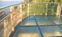The scenic area boasts a spectacular transparent glass viewing platform, jutting several meters above the cliff. From the balcony, you can admire the sea's stone forest, General Rock, and frogs. Standing on the transparent reinforced glass, you can gaze down at the surging ocean from over ten meters above, feeling as if your feet are standing on air.