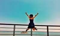 The sea breeze blows, the plank road walks, the blue sea and blue sky, and then it gets dark