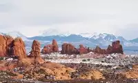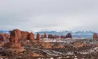 Don't drive too fast in national parks, as it's easy to accidentally miss a viewpoint. Even if you see someone parked, slow down, as there might be a beautiful view. After a snowfall, the snow-capped mountains appear endless from afar, and the air is refreshing. Standing here is truly captivating. The restrooms in Arches National Park are luxurious, far surpassing the pits in many other national parks. This park reminds me of Göreme in Turkey; the landscape is similar, but also slightly different. The stone pillars here are denser than those in Turkey.
