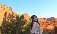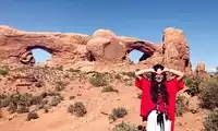 Today was an exciting day. We set off early, ready to enter the true West. We arrived at Arches National Park at 10 AM. It's hard to believe: just two days ago, it was winter, surrounded by snow-capped mountains, but now we're greeted by a fiery red desert landscape. Arches National Park, located in the small town of Moab, Utah, is the world's largest concentration of natural sandstone arches, with over 2,000 arches of various sizes. The park is so vast that a full day is enough to explore. Photography enthusiasts can stay for two days and take their time, especially capturing the starry sky at night. We spent the entire day exploring, exiting Delicate Arch only after sunset and returning to Moab. Moab isn't a large town, so it's a great place to take a walk after showering and grab a bite to eat. However, wear a light down jacket; the temperature only dips to 7 degrees Celsius at night, resulting in a significant temperature swing.
