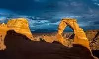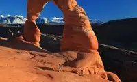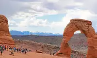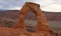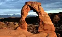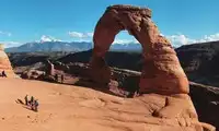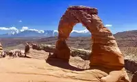 Arches National Park, located north of Moab, Utah, is the world's largest concentration of natural sandstone arches, with over 2,000 arches of various sizes. Delicate Arch is the park's treasure and the symbol of Utah, even appearing on Utah license plates. The 2002 Winter Olympics torch relay also passed beneath the arch. (Delicate Arch offers the most stunning scenery, but also the most challenging path.)
