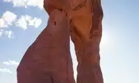 The rocks within Arches National Park have been eroded over hundreds of millions of years, creating a diverse array of shapes. Some resemble arches, others spires like towers, still others resemble solitary hills, and even larger, scattered formations of endlessly varied rock formations. Their myriad forms and shapes offer a breathtaking display of nature's uncanny handiwork. Their formation unfolds as follows: Millions of years ago, as the sea receded, geological movements caused the rock to rise in strips. Through erosion from the sun, rain, and sunlight, salt from the seawater accumulated at the base, causing collapse and hollowing out the base, forming over 2,000 arches. Geological processes continue today, with old arches collapsing and new ones appearing. According to statistics, 42 arches have collapsed due to erosion since the 1970s.