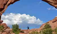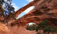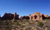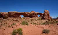 The turrent arch, south window, and north window arches are connected by a common trail. A trail north of the south window arches offers a vantage point for gazing at the turrent arch through the south and north windows, perfect for watching the sunrise. The trail to the twin arches is very short and clearly visible from the parking lot.