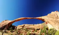 Souvenirs: Landscape Arch postcards or prints, hiking guidebooks, outdoor gear from Moab outdoor stores.