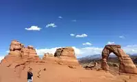 To reach the park's landmark, Delicate Arch, I had to walk nearly five kilometers of poorly maintained roads under the scorching sun. The road was essentially a series of ups and downs among piles of rocks. Sun protection and plenty of water were essential for this walk. Fortunately, a kind American I met along the way provided me with a hat and water. It was an unforgettable experience...