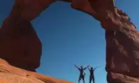 Although you have to hike 4.8 kilometers to reach the Delicate Arch in Arches National Park, how can you see the rainbow without going through wind and rain?