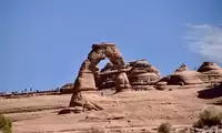 If you don't have the time or energy for Arches National Park, you absolutely must visit Delicate Arch first, as it's the longest trail, bar none. For those of us who don't exercise often, seeing the arch is a life-or-death struggle. There's all sorts of climbing, and then there's the climbing, and then there's the climbing. People coming down the mountain along the way will keep telling you they'll be there soon, but don't believe them, because even if it's fast, it's still really far away. Seeing the arch truly relies on willpower, though fitness enthusiasts don't have to worry about that. The arch actually needs to be photographed from a distance; if you get close, you won't be able to capture it completely. Plus, there are often unruly people who cut in line, making it difficult to get a complete photo. It was really frustrating for me. I hope you don't go during crowded times, as that would mean you'll only be able to see the arch, not take any photos. There are still some tricky photo spots, so be sure to check them out.