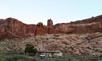 The scenery is unique and it's a popular attraction. Even Utah license plates feature the Arches as a backdrop. In the small town of Moab, if it's not off-season, you'll find plenty of tourist services. The locals offer a wide selection of Thai and Mexican food, which is quite good. However, it's so far from the city, so the vegetables aren't fresh. Honestly, public services are scarce, not even restrooms. If you need to wash your hands, it's best to do so at the hotel. The hotel is very close to the Arches, a 10-20 minute drive away.