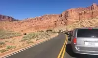 We arrived at the park entrance at 11:00 AM. As expected, it was Sunday, and a long line had already formed outside the toll booth. Fortunately, queues in the US are quite efficient, and after about ten minutes, we were successfully admitted. Once again, I felt proud to use my annual park pass. After passing the toll booth, we began to cross the mountains and walk across the vast plains. The entire area was much larger than I had expected, and the long drive before reaching the main attractions felt like rushing through the wilderness. At first, all I could see was a vast, rocky plain. Then, large rocks began to appear, and the atmosphere here was very similar to Monument Valley. We passed a "rock hill" along the way, which gave me an inexplicable sense of solemnity and pilgrimage.