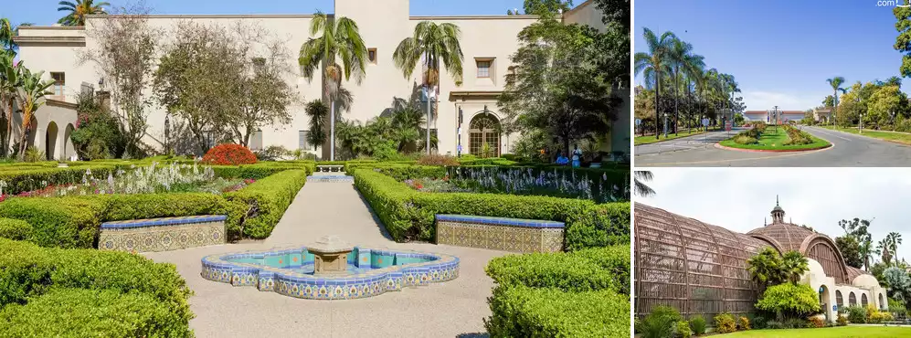 Balboa Park is a renowned cultural park in San Diego, showcasing Baroque and Gothic architecture. Admission is free. Within the park are attractions such as the San Diego Zoo, the National Museum of Natural History, and the San Diego Museum of Art. It also includes a small "Parque des Nations" (Parc des Nations), which houses the China Pavilion. This comprehensive park boasts ancient Spanish architecture, a clock tower, gardens, fountains, and lawns, making it ideal for hiking and cycling.
