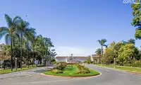 Walking along the path in the park, you can see the green grass and red roofs and white walls under the tropical palm trees, and hear the hearty laughter of children in the melodious music.